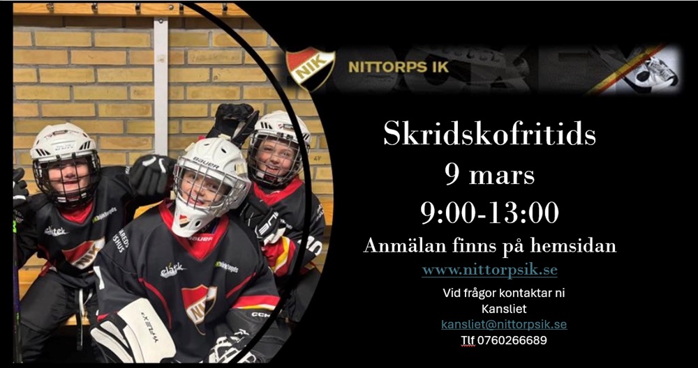 Följ oss gärna! Facebook.com/nittorpsik | Instagram.com/nittorpsikhockey | Instagram.com/nittorps_ik YouTube.com/nittorpsik
